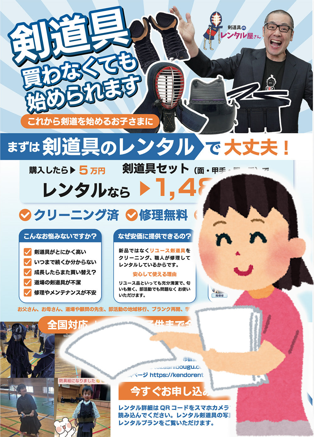 前の方が使った剣道具はすべて清掃、クリーニングをしています。誰だって前の方の汗や汚れが残っているといやな気持になります。